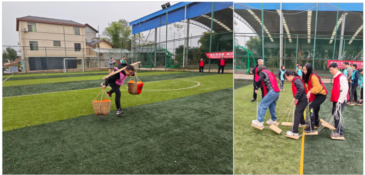 2024年12月11日,全体教职工在院党总支和分工会的精心策划与领导下,齐聚于风景秀丽的重庆市江津区鲁能美丽乡村,共同参与了一次意义深远、令人难忘的活动。当大家抵达了活动场地之后,首先进行的是破冰分组环节,教职员工们迅速地融入到这个温馨的集体中,自发地分成了三个充满活力、斗志昂扬的比赛小分队。紧接着,随着一声号令,正式拉开了比赛的序幕。这次活动的内容丰富多彩,涵盖了多个比赛环节,其中包括了单肩挑扁担往返接力项目“朱德的扁担”,这个项目不仅考验了大家的体力,还考验了团队之间的协作与配合;还有团队齐心协力前进项目“巨人的脚步”,在这个项目中,每个小队成员都必须步调一致,共同前进,展现了团队的凝聚力;最后是协作配合运输项目“水到渠成”,在这个环节中,大家需要通过默契的配合,将水快速、高效地运输到指定地点。在这些比赛环节中,各小队成员都表现出了极高的团队精神,他们以满腔的热情和严谨认真的态度,积极地投入到每一项比赛之中,充分展现了全院教职员工的风采和力量。