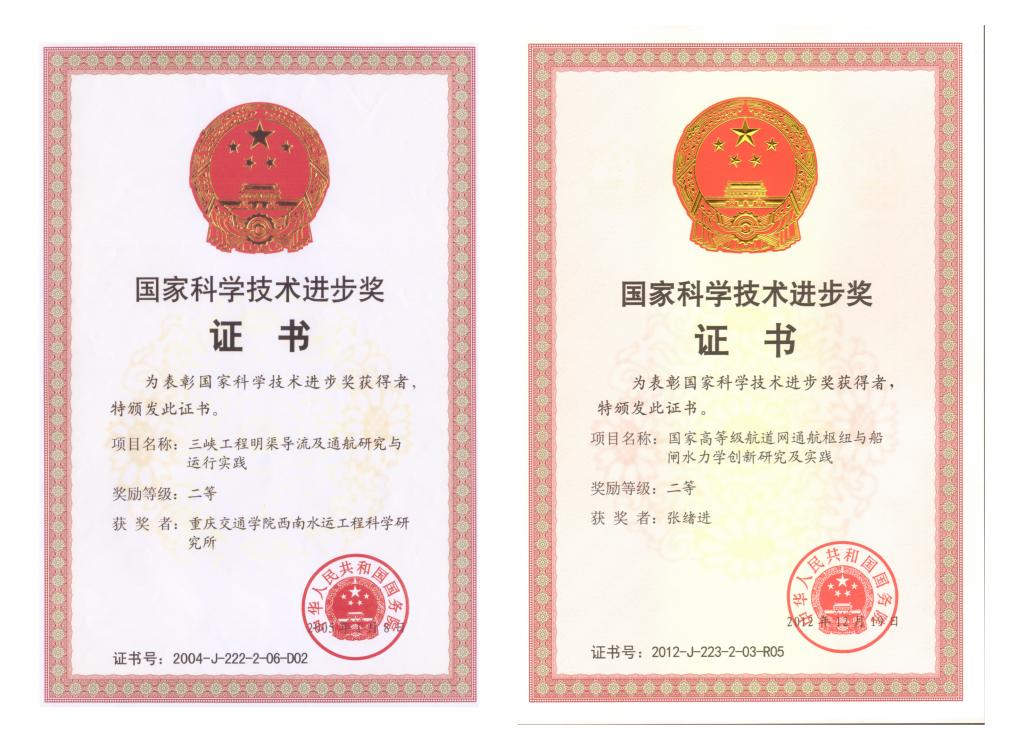 | 5 | 国家高等级航道网通航枢纽与船闸水力学创新研究及实践 | 国家科技进步奖 | 二等奖 | 2012 |